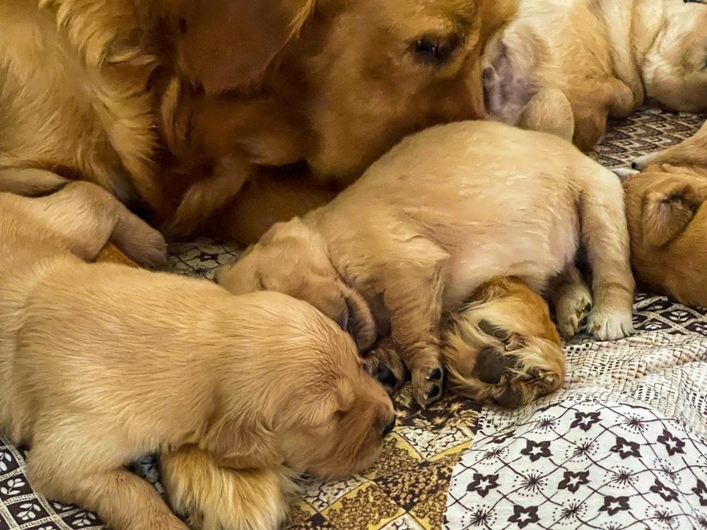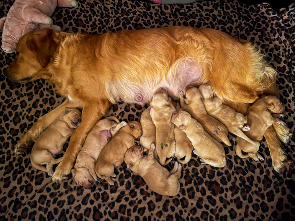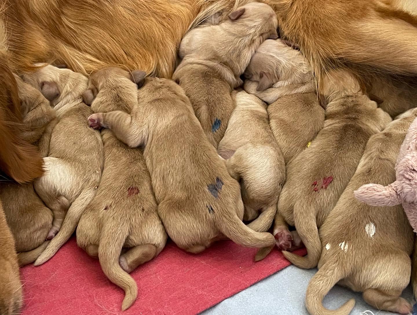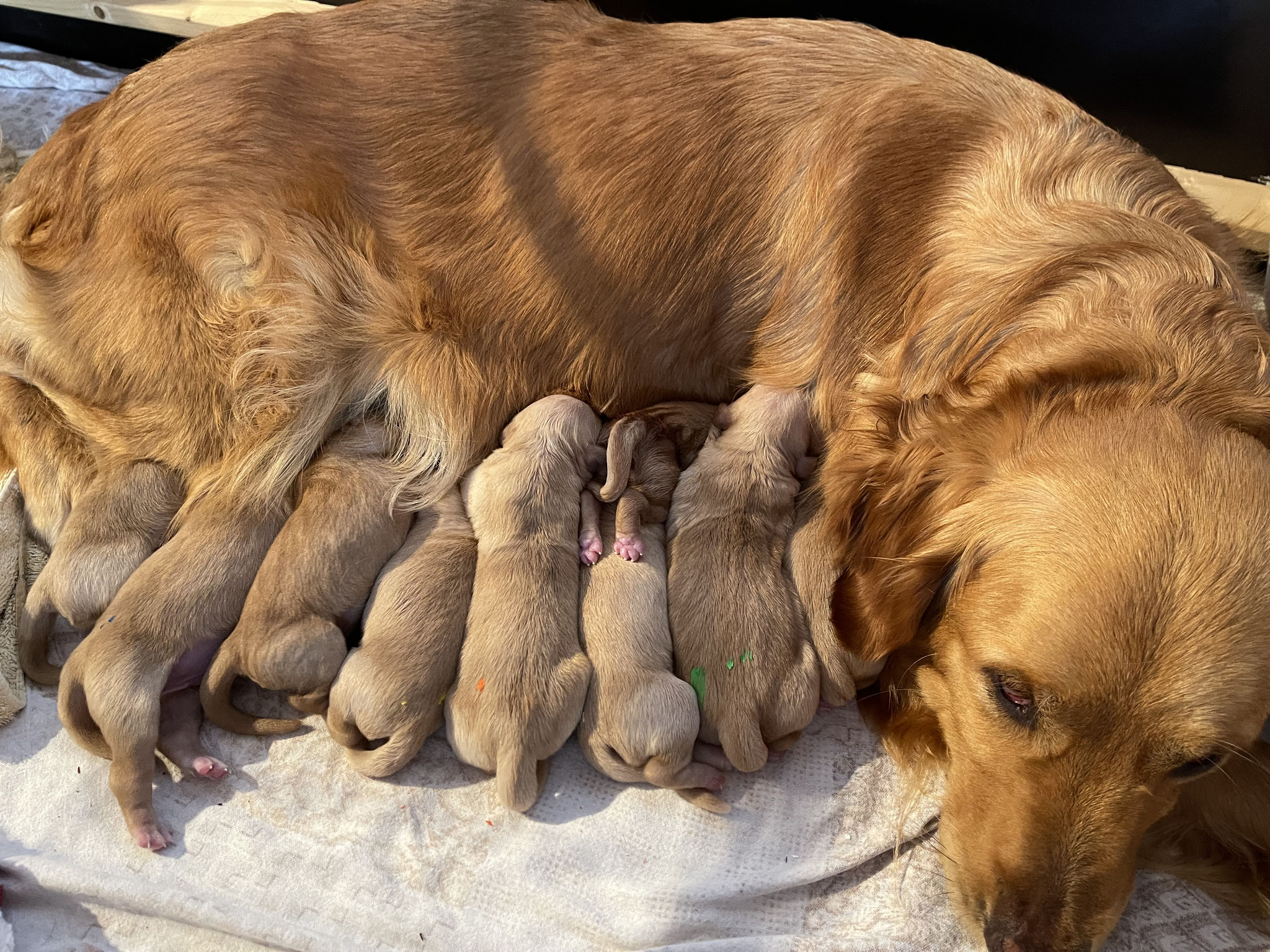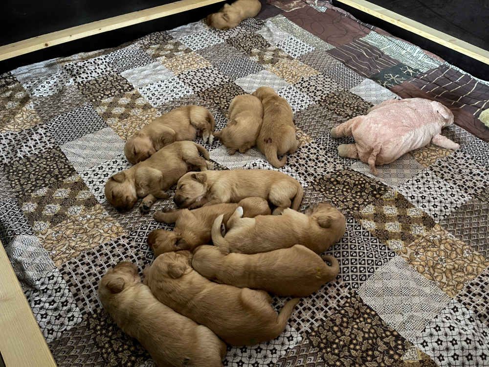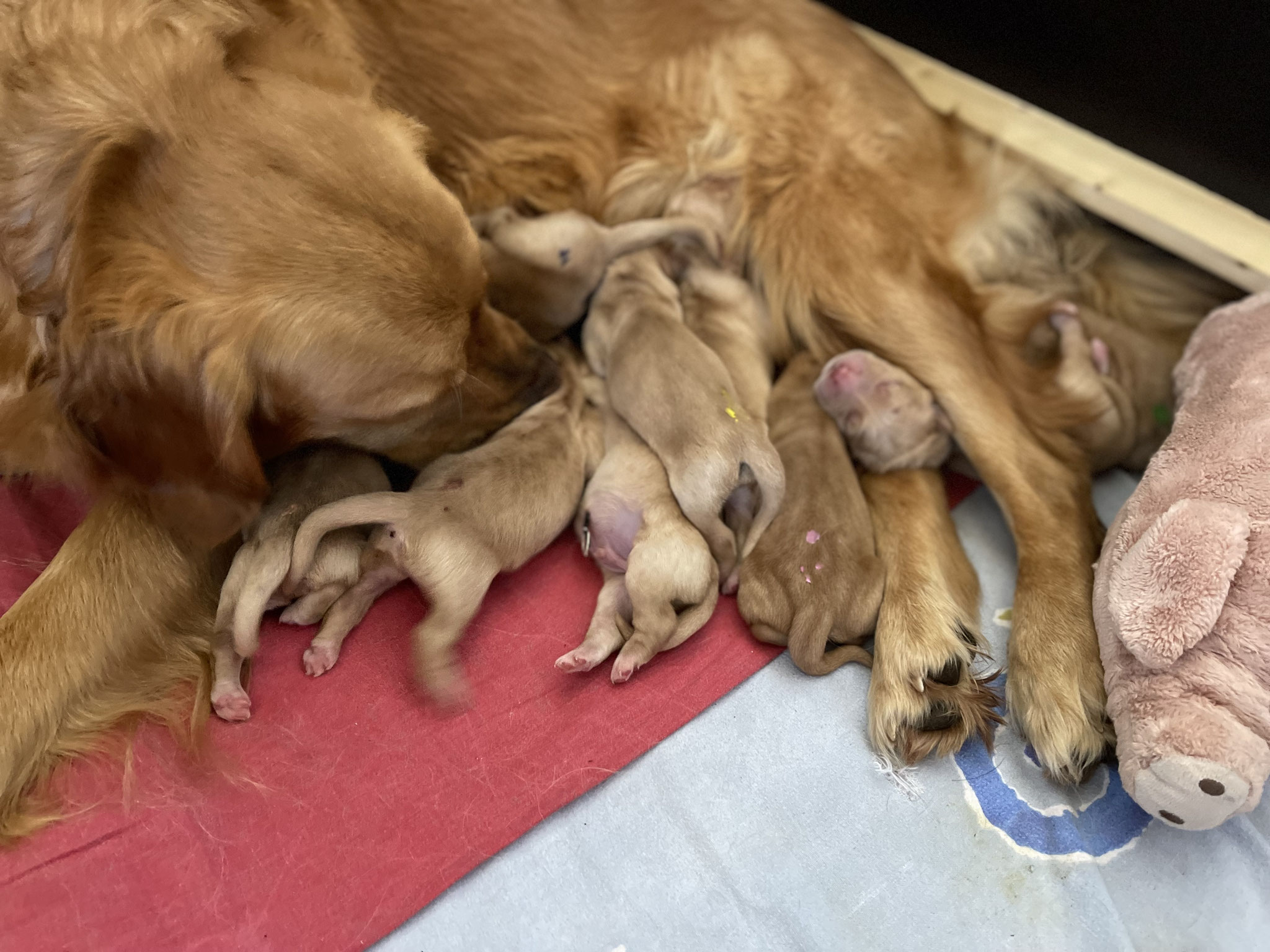 Am 24.05.22 hat Fritzi 11 gesunde Welpen geboren. 8 Rüden und 3 Hündinnen.